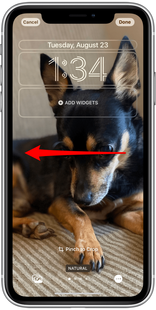 - Once you have your photo positioned how you'd like it, you can swipe from the right side of the screen to the left to show more photo styles, including Black & White, Duotone, and Color Wash.