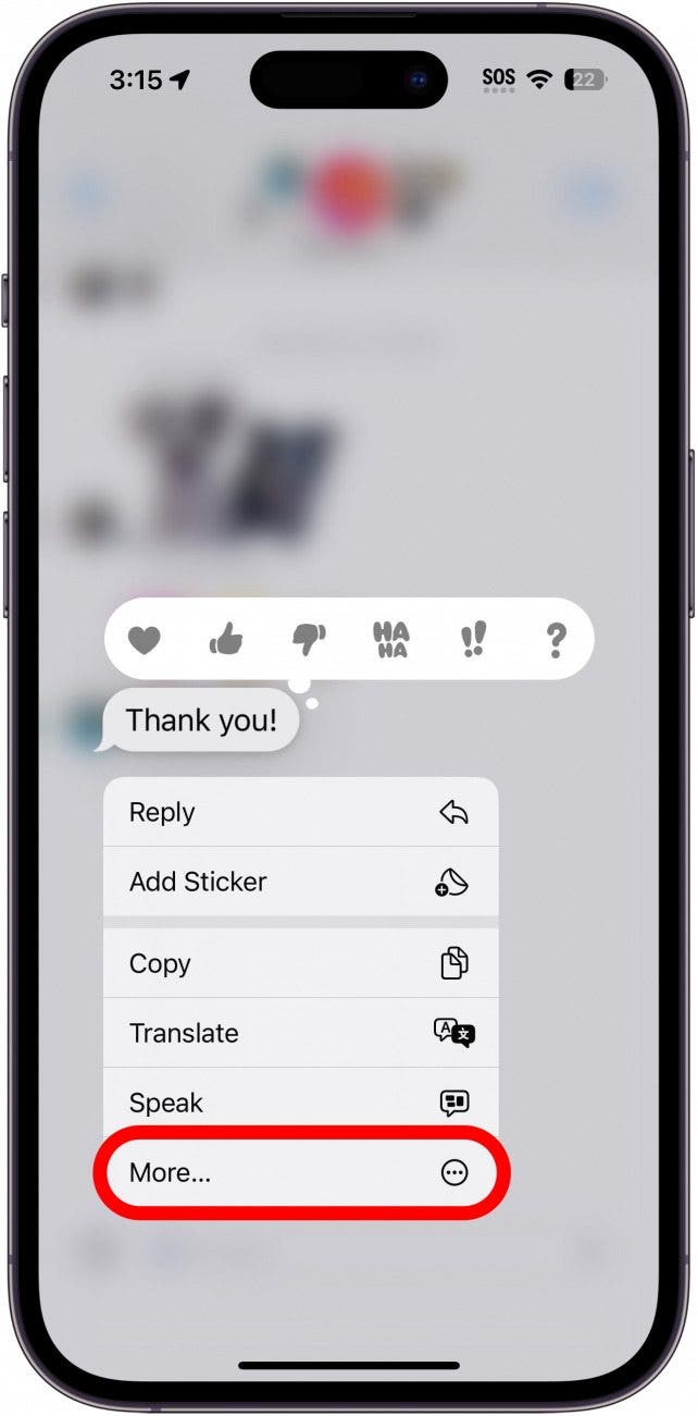 - Open any text conversation in the Messages app. Then, just long press on any message.