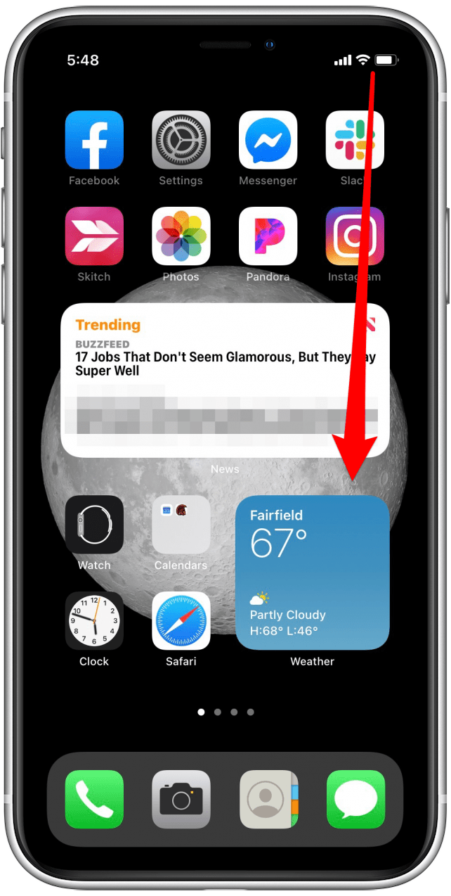 - Open your Control Center. (If your iPhone has a Home Button, Swipe up from the bottom center of the screen. For iPhones without a home button, swipe down from the upper-right corner of the screen.)