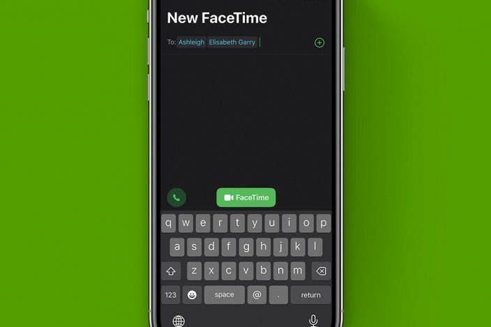 - Once you've added everyone to the list that you want to call, tap the green FaceTime button with the video camera icon above the keyboard.