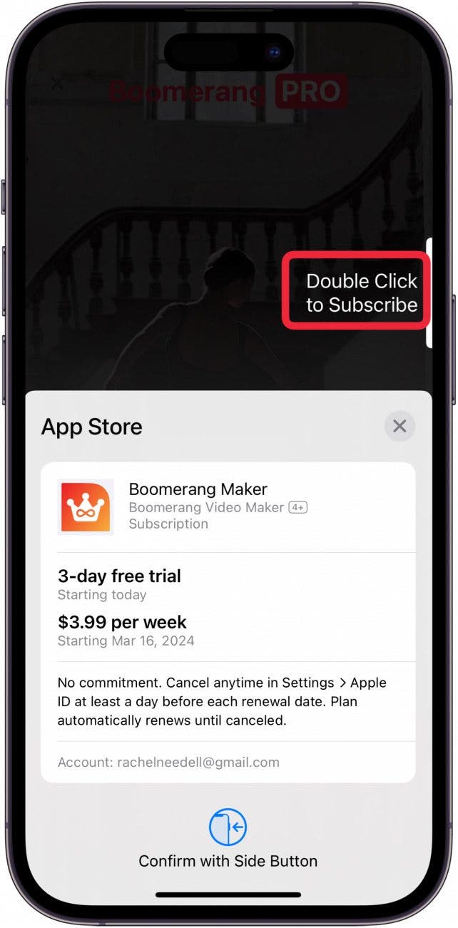 There are many third-party apps that can loop a video. I’ll show you all the steps for how to do it with Boomerang Video Maker. While there is a 3-day free trial, you will need to cancel the subscription if you don't want to pay $3.99 a week (don't worry, we'll show you how to cancel a free trial below).