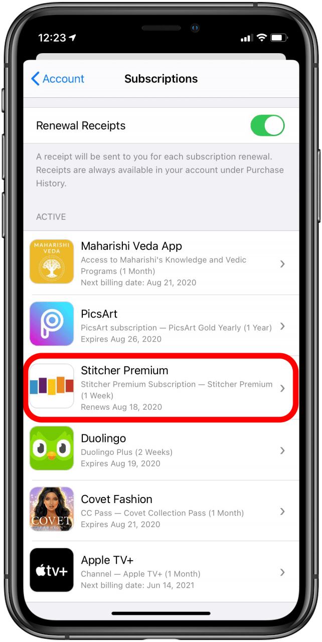 - Tap Subscriptions.