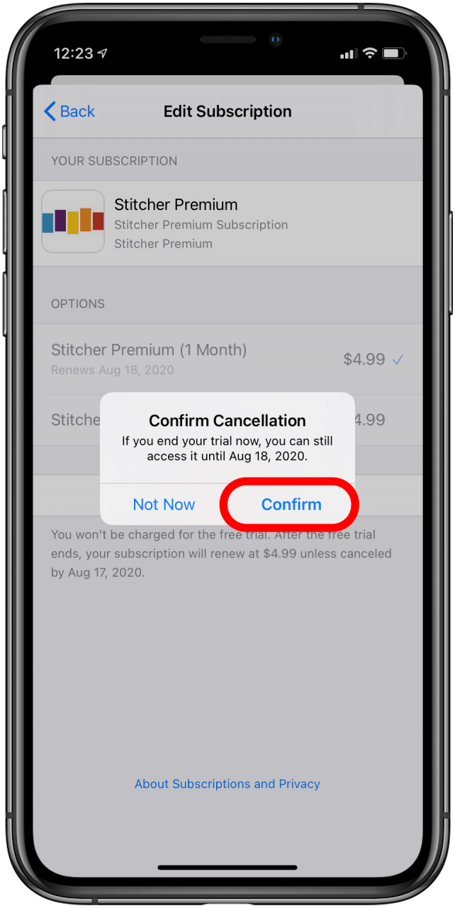 - Tap Cancel Free Trial.
