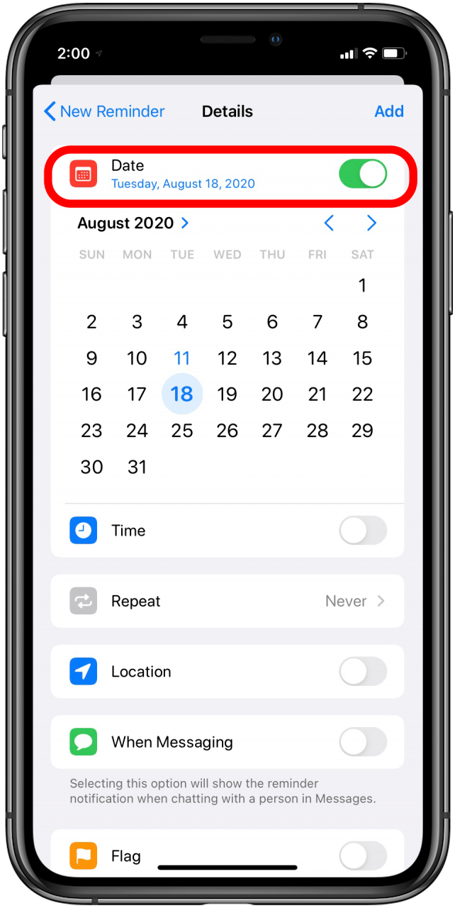 - Toggle Date on and select the date and time you want to be reminded. Make sure the time is more than 24 hours before your free trial expires.