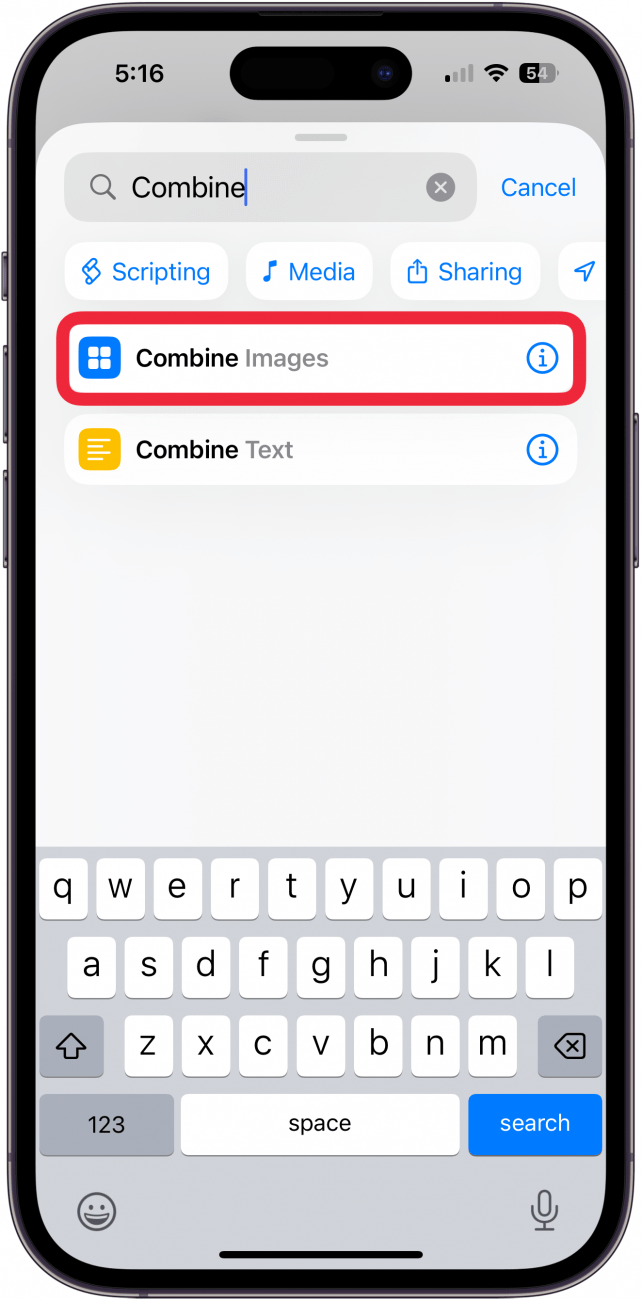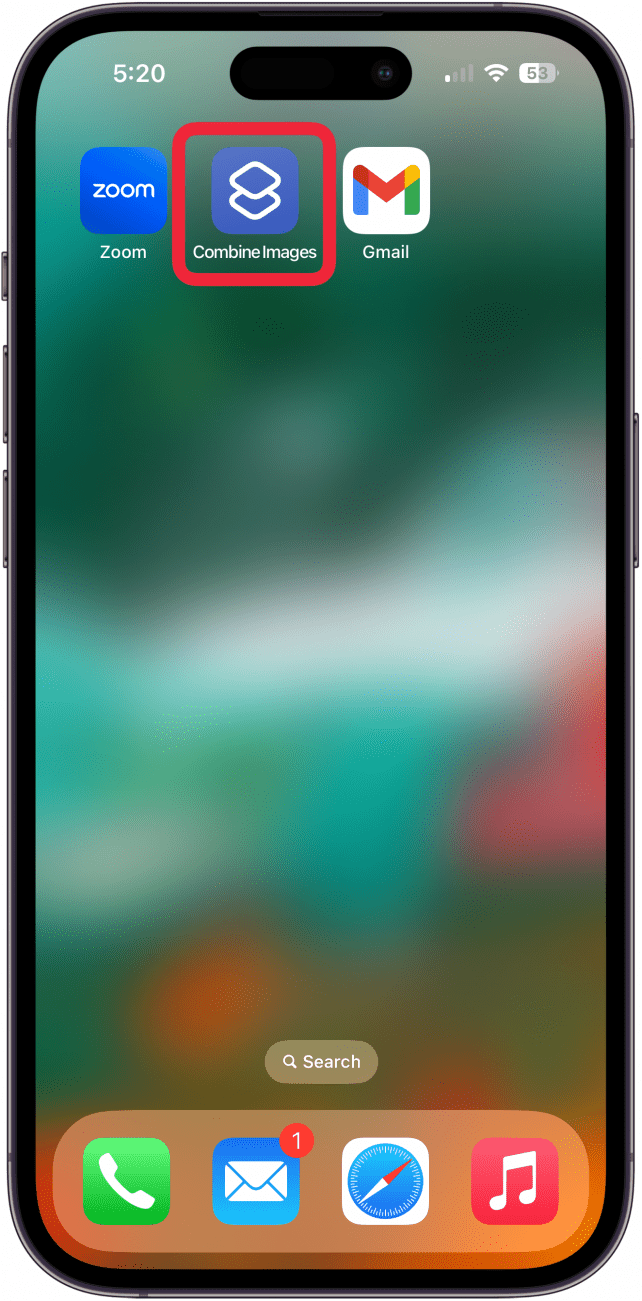 Now that you've set up a shortcut for combining photos, here's how to use it to merge two photos together on your iPhone: