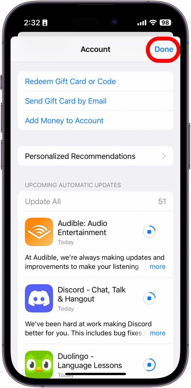 - The apps you need to update will be listed under Available Updates or Upcoming Automatic Updates. Update all your apps at once by tapping Update All.