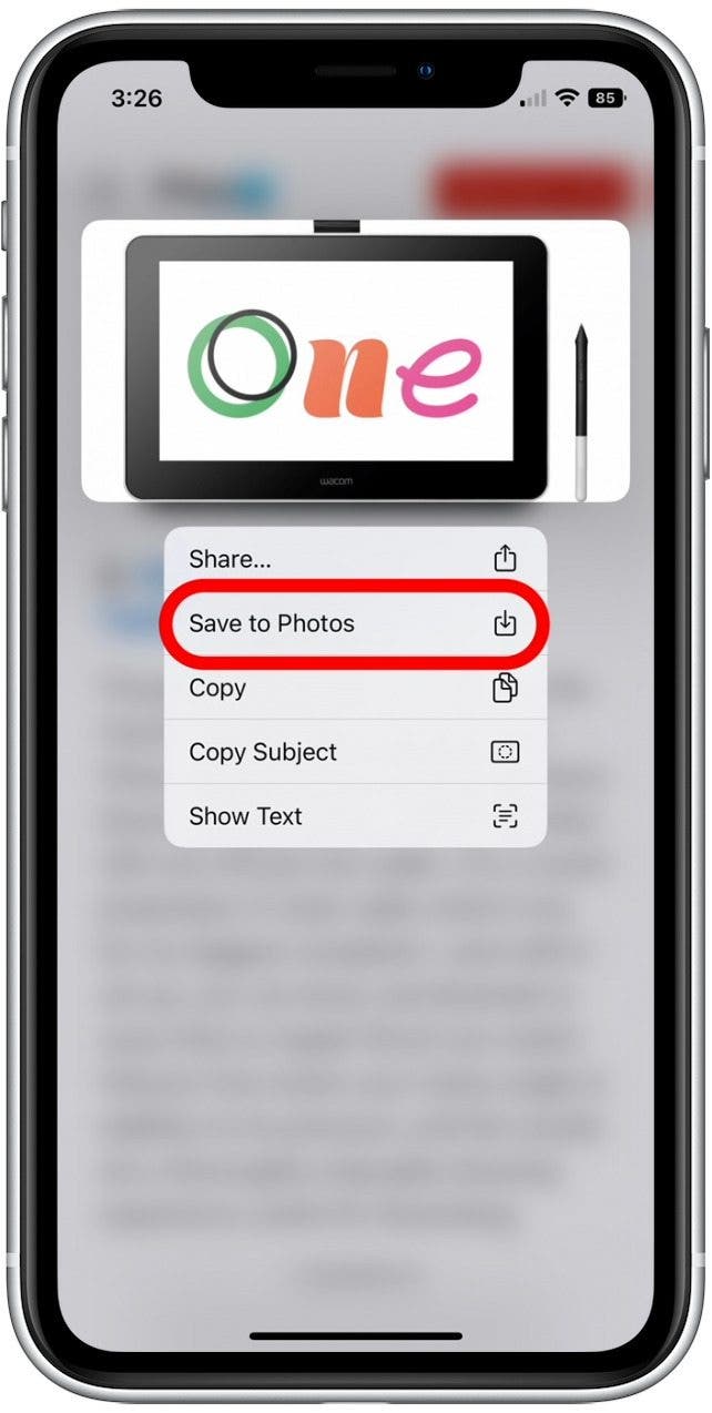 - Tap Save to Photos to save the image in your iPhone Photos app.