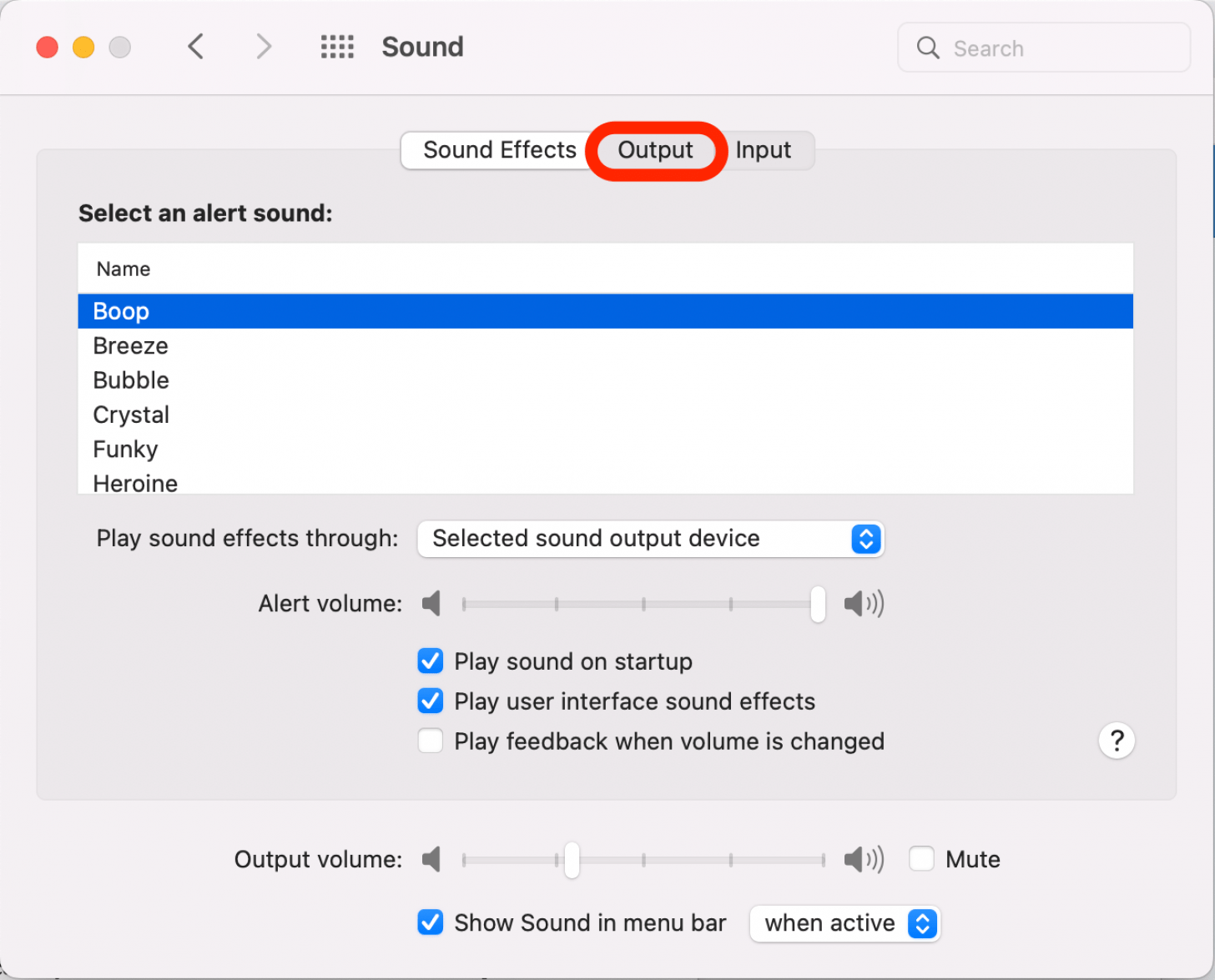 - Click a device to set it as the new sound output. The options will list all currently available devices. Whichever one is highlighted is currently selected.