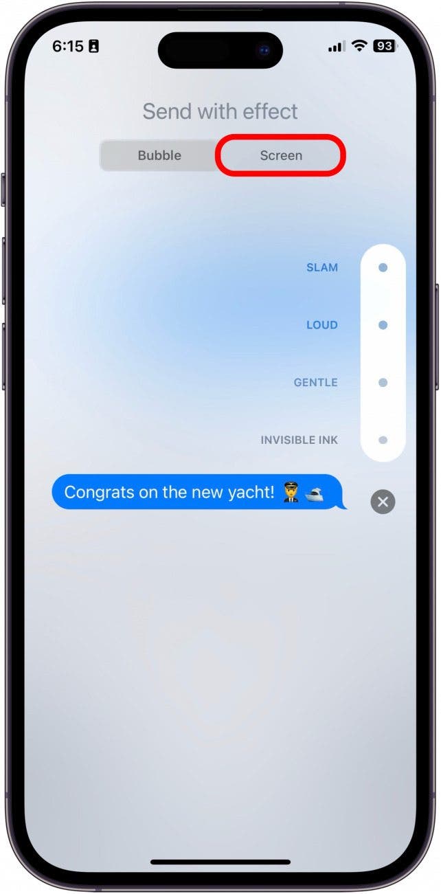 - A new Send with Effect screen will pop up. Select Screen at the top of the page.