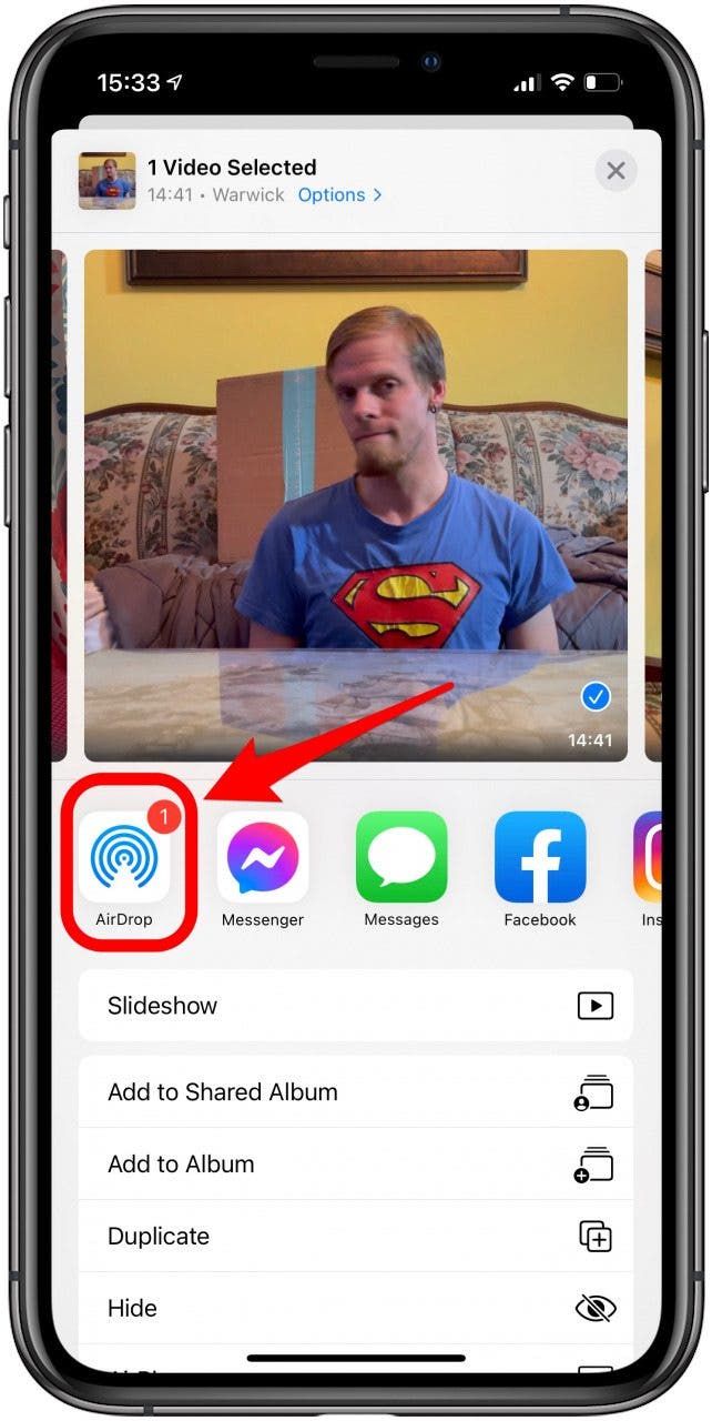 You will need to make sure that your AirDrop is enabled on the device that you are sending the file from and receiving the file on. Read this to learn how to turn on AirDrop. Also, take a look at this article about customizing your iPhone share sheet. To learn more about taking selfies with an iPhone, sign up for our free Tip of the Day newsletter.