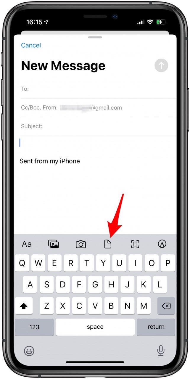 - Find the file you want to send and tap it. It can take a few moments for it to appear in the email body.