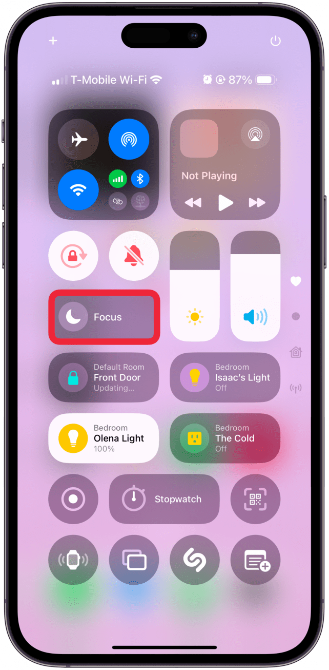 - Tap Focus. If you don't see it when you first open your Control Center, scroll through your Control Center pages until you find it, or add it to the first page.