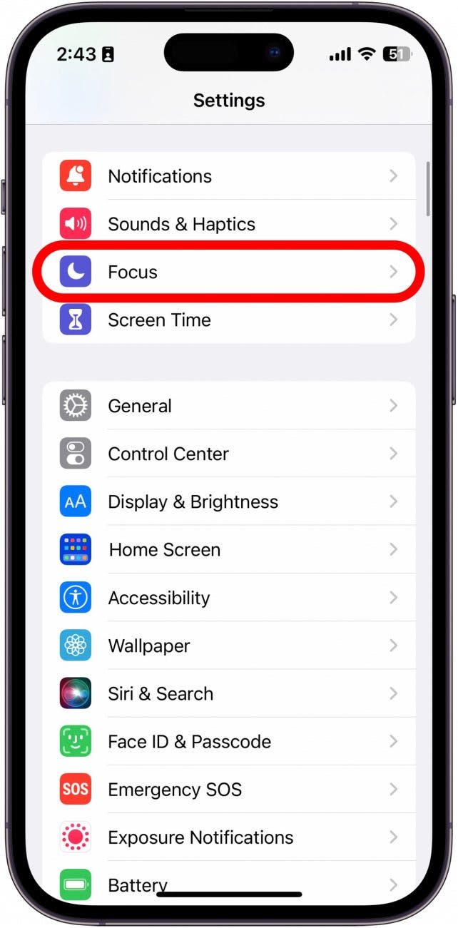 - Open Settings on your iPhone, and tap Focus.