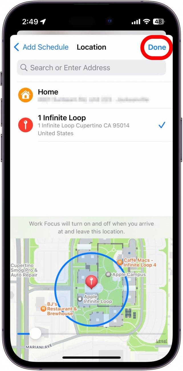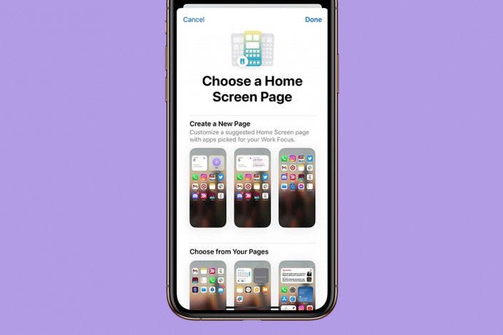 You can set a Focus to automatically shift depending on your location or the time of day. And because you’re really serious about staying productive, setting the Focus mode to automatically turn on when you’ve entered the office ensures you won’t sit down at your desk and immediately open social media. For more Focus mode tricks, be sure to sign up for our free Tip of the Day newsletter. Now, here’s how to automatically change your Home Screen on your iPhone when you arrive at work: