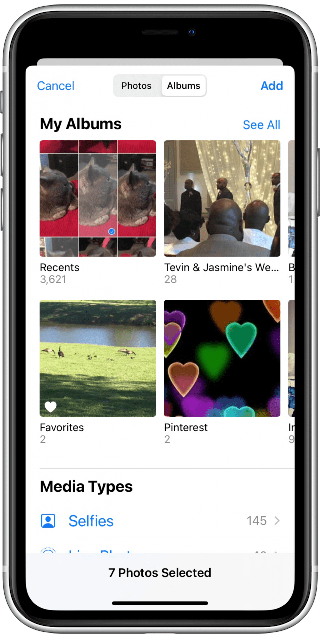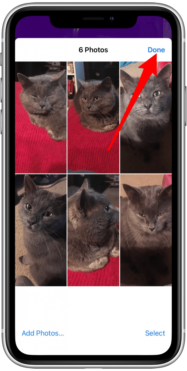 - To add more photos, tap the photos icon on the bottom left of your screen.