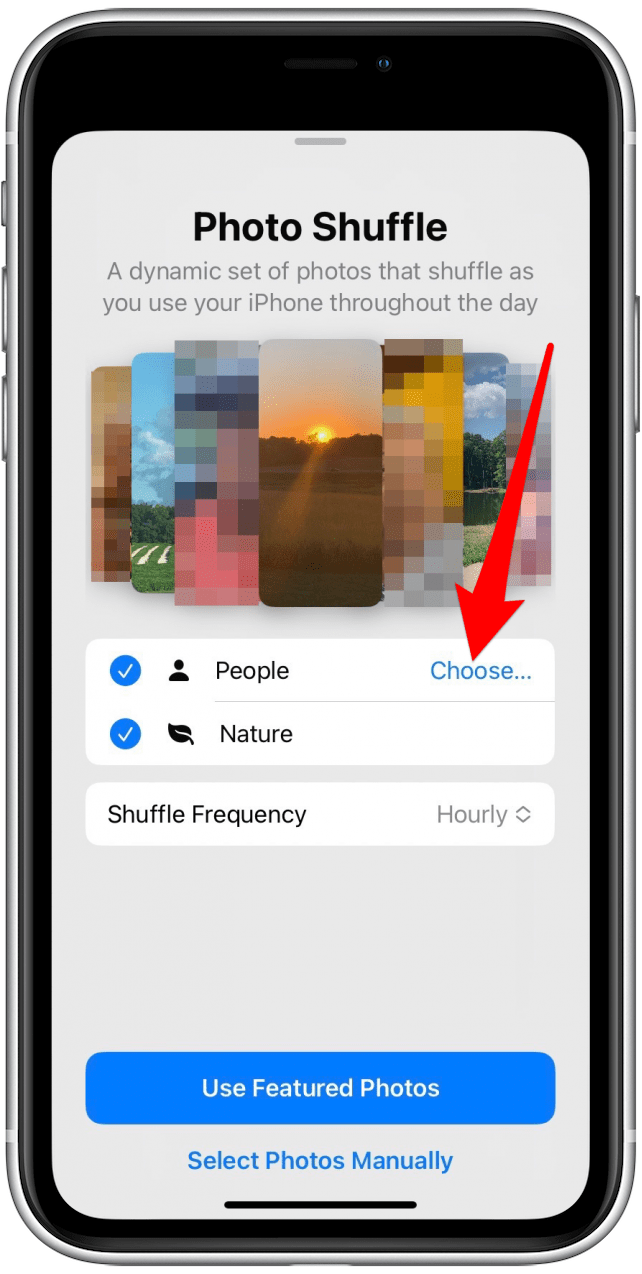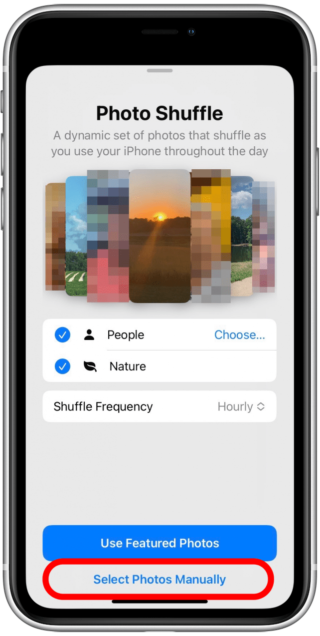 If you choose to automatically set up Photo Shuffle, photos will be selected for you based on your preferences. This is a great option if you want to see a great variety, including more recently taken photos.