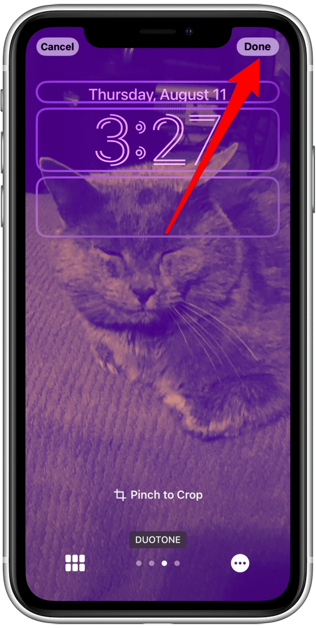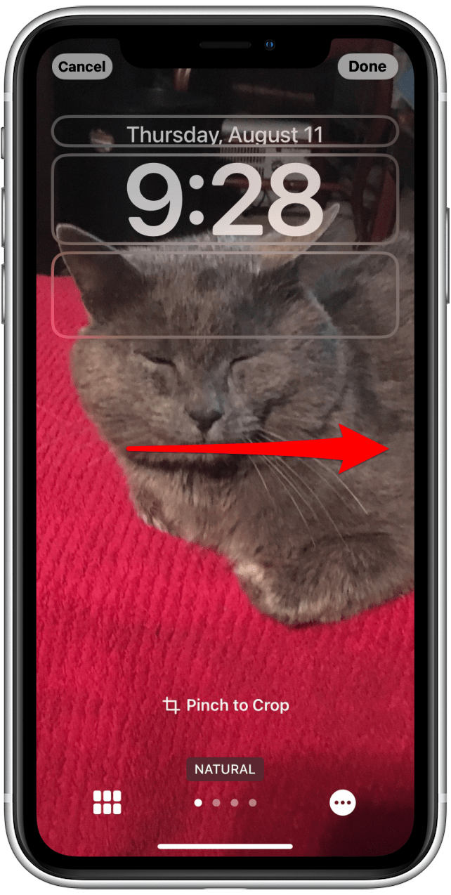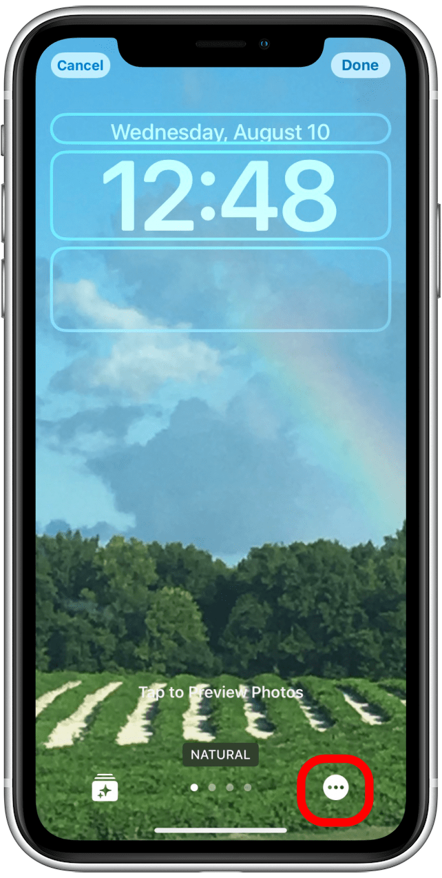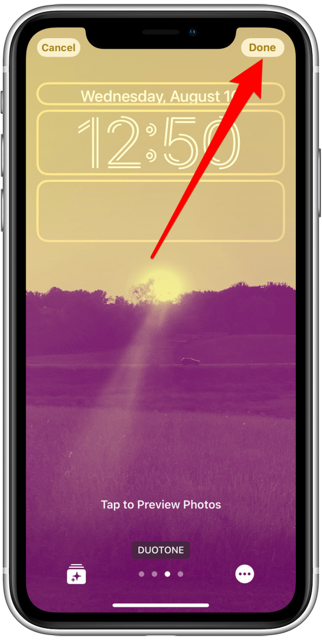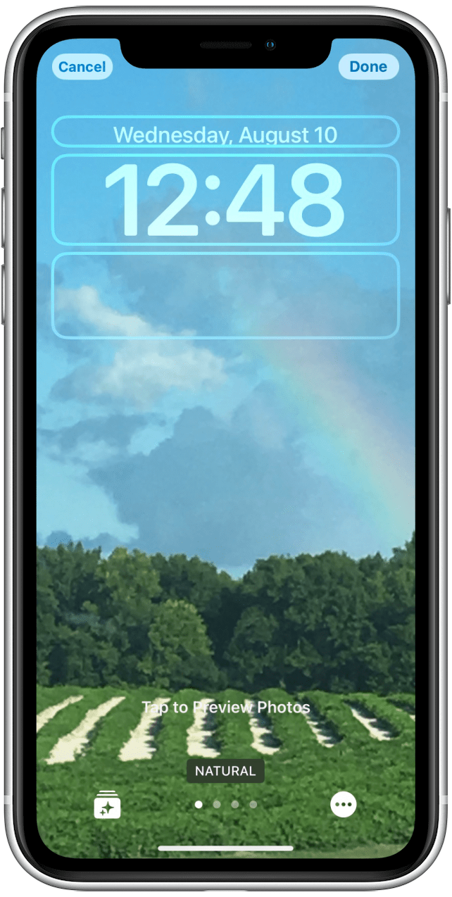 - Next, you’ll be able to further customize your Lock Screen by swiping to change the photo style. The options are Natural, Black & White, Duotone, and Color Wash.