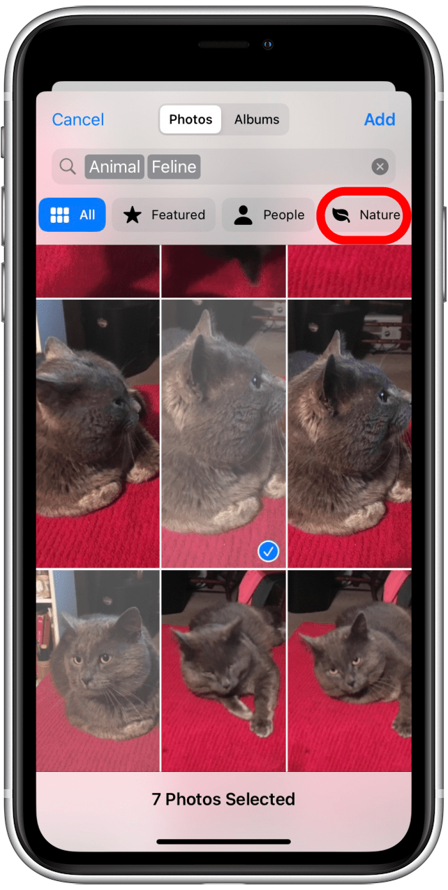 - You can also tap People, Pets, Nature, or Cities to see photos that your iPhone identifies to be in those categories. Please keep in mind that the results may not be perfect.