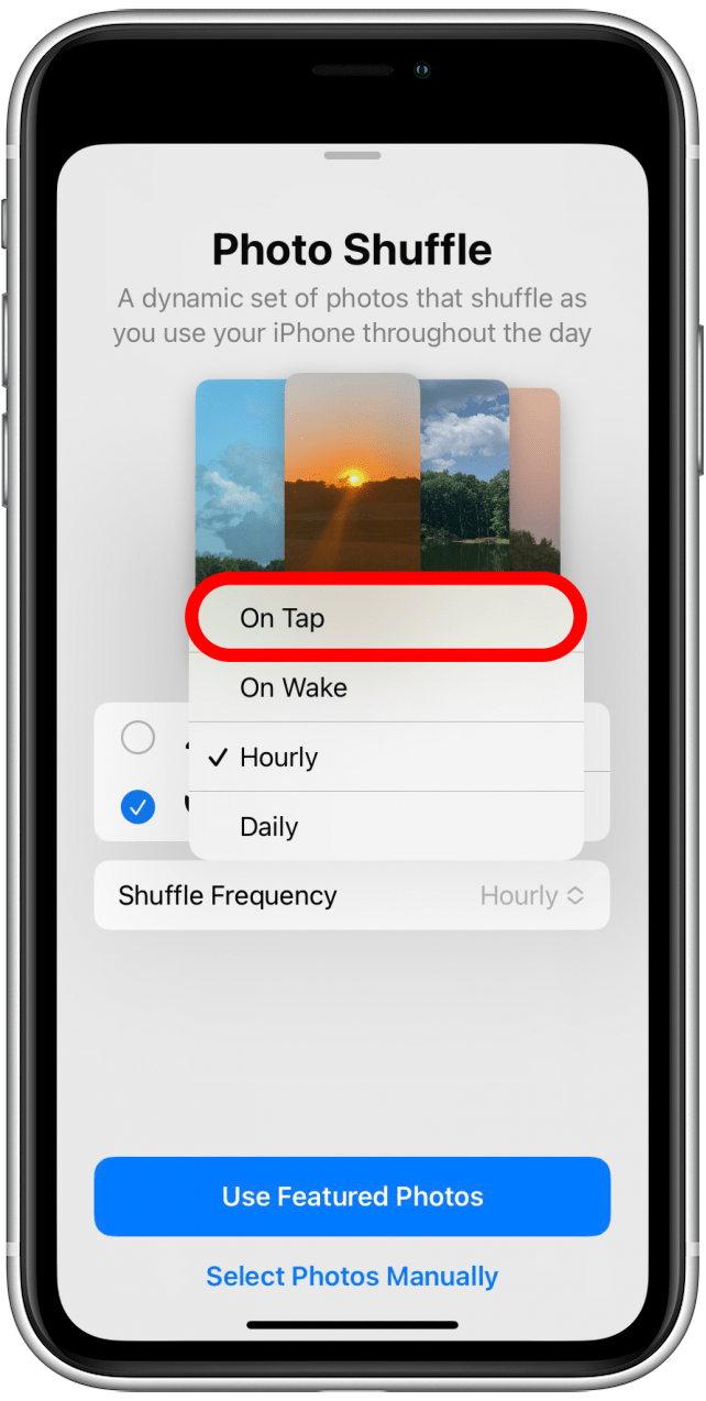 - On Lock changes photos every time you wake your iPhone, this is my favorite option. Hourly changes the photo every hour. Daily changes the photo every day.