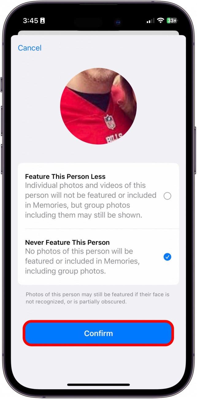 - Find the person you no longer want to be featured in memories and tap their photo.