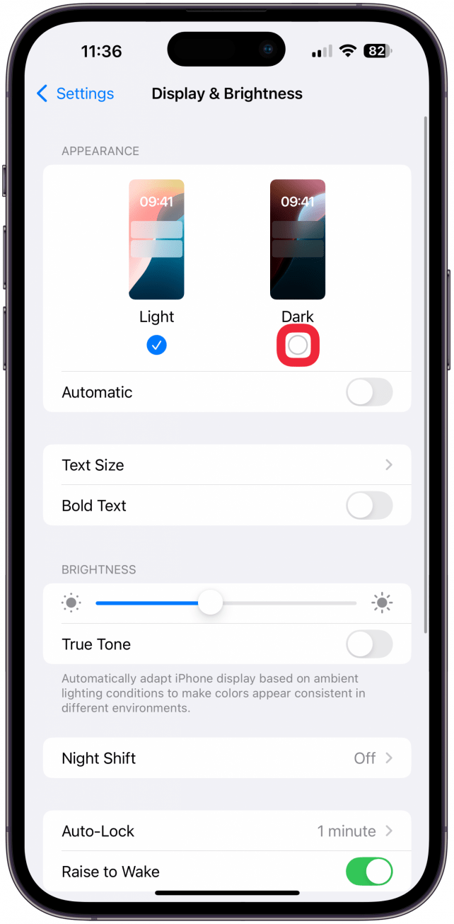 - Tap the circle under Dark.