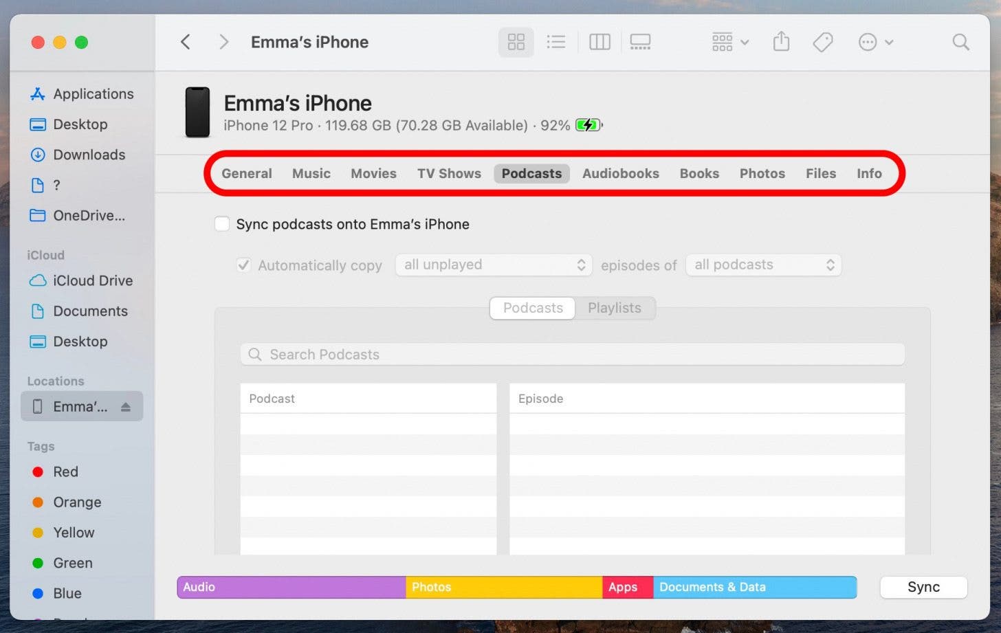 Sync your iPhone to your Mac for easy access to photos, videos, podcasts, and more.