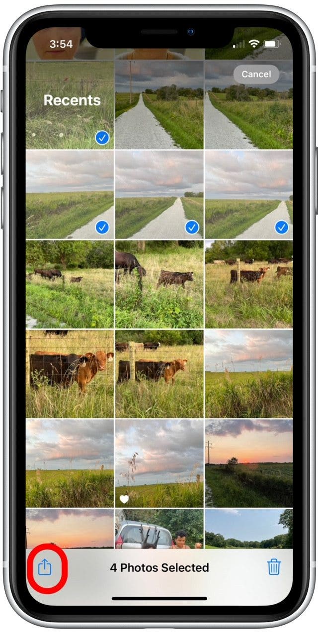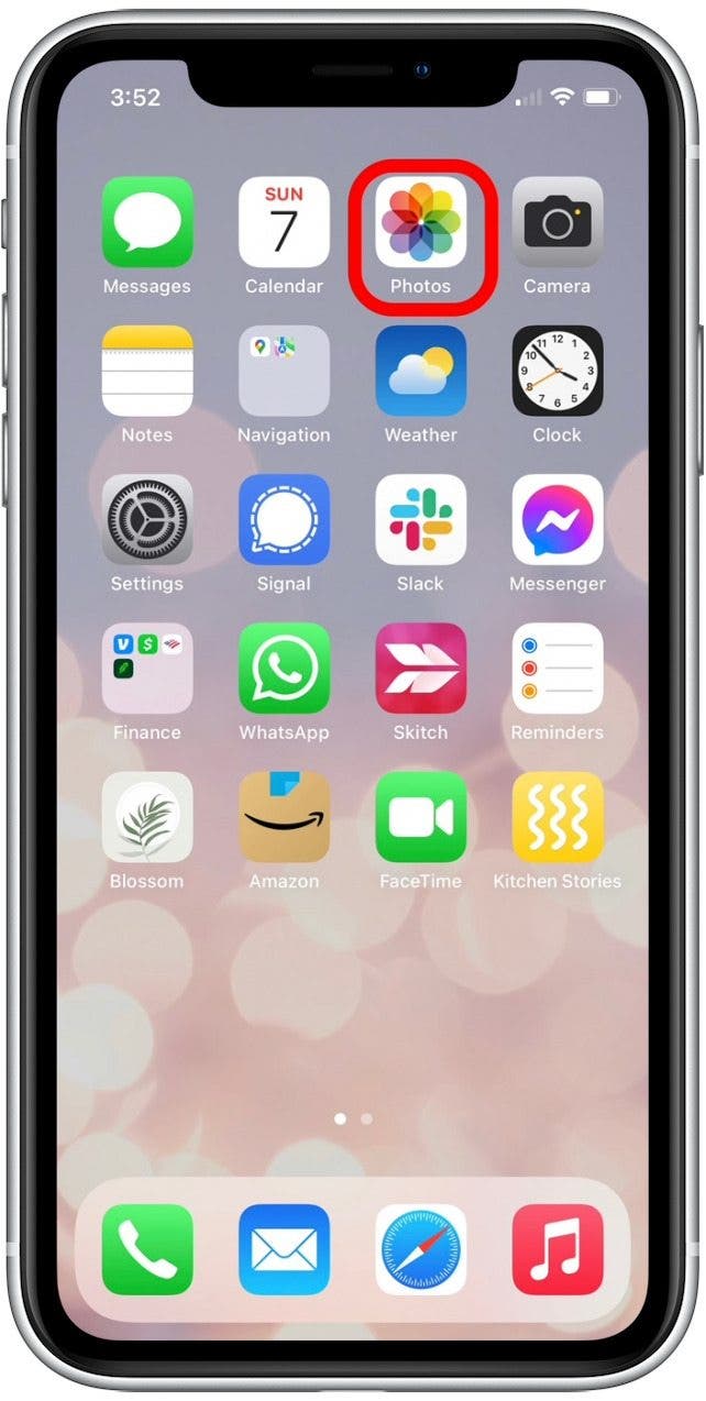 - Open the Photos app and find the pictures you want to send to another iPhone.