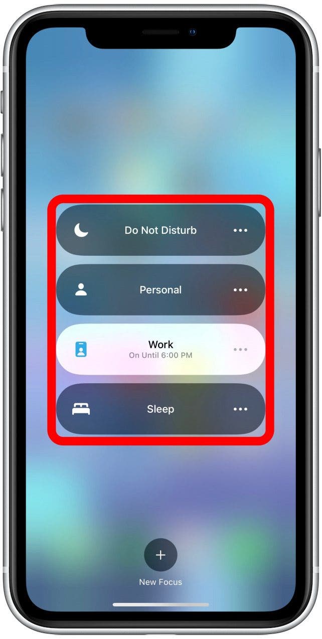 - From here, you can select Do Not Disturb, Work, Personal, or Sleep.