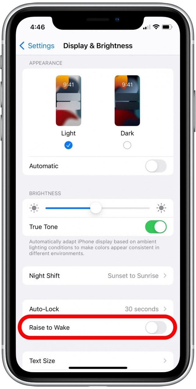 - Tap the Raise to Wake toggle to disable it. (The toggle is gray when disabled.)