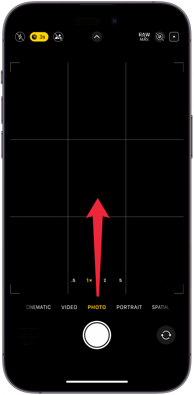 - Swipe up from the Photo/Video toggle at the bottom of the screen.