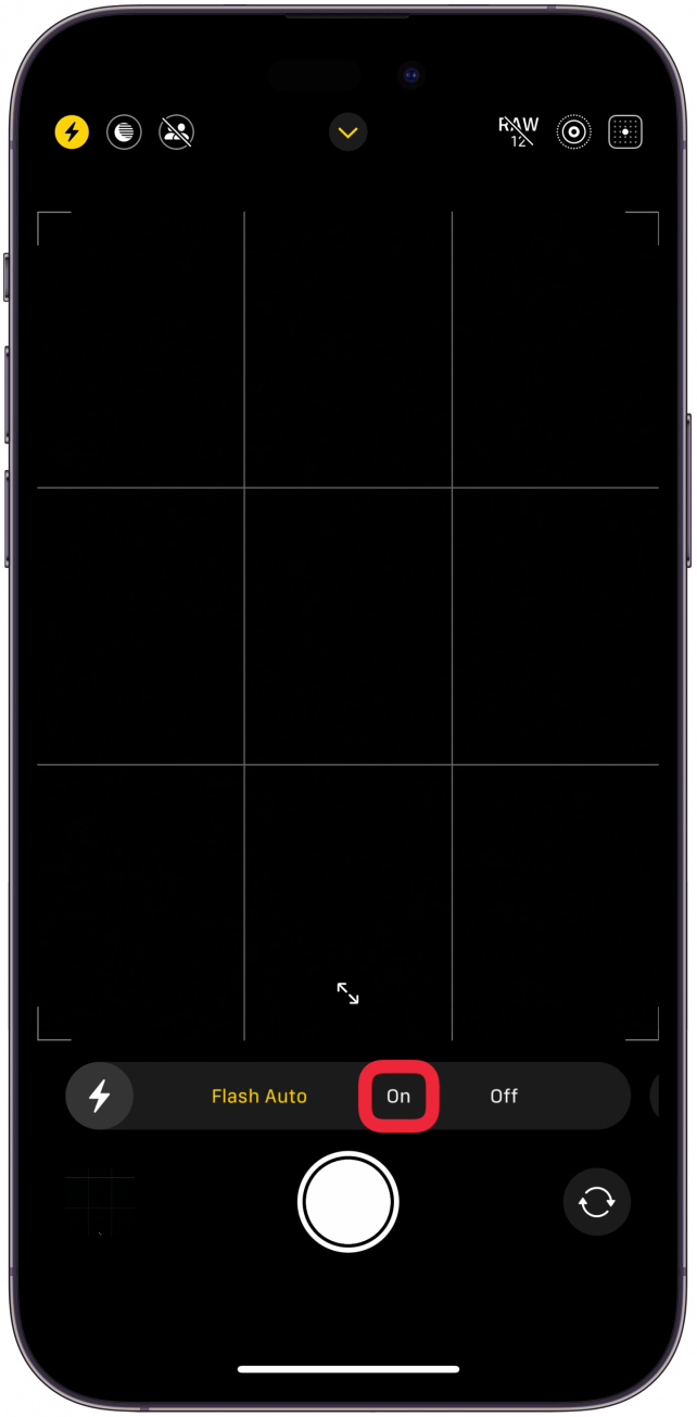 - You can also toggle through these three options by tapping the Flash icon in the upper right.