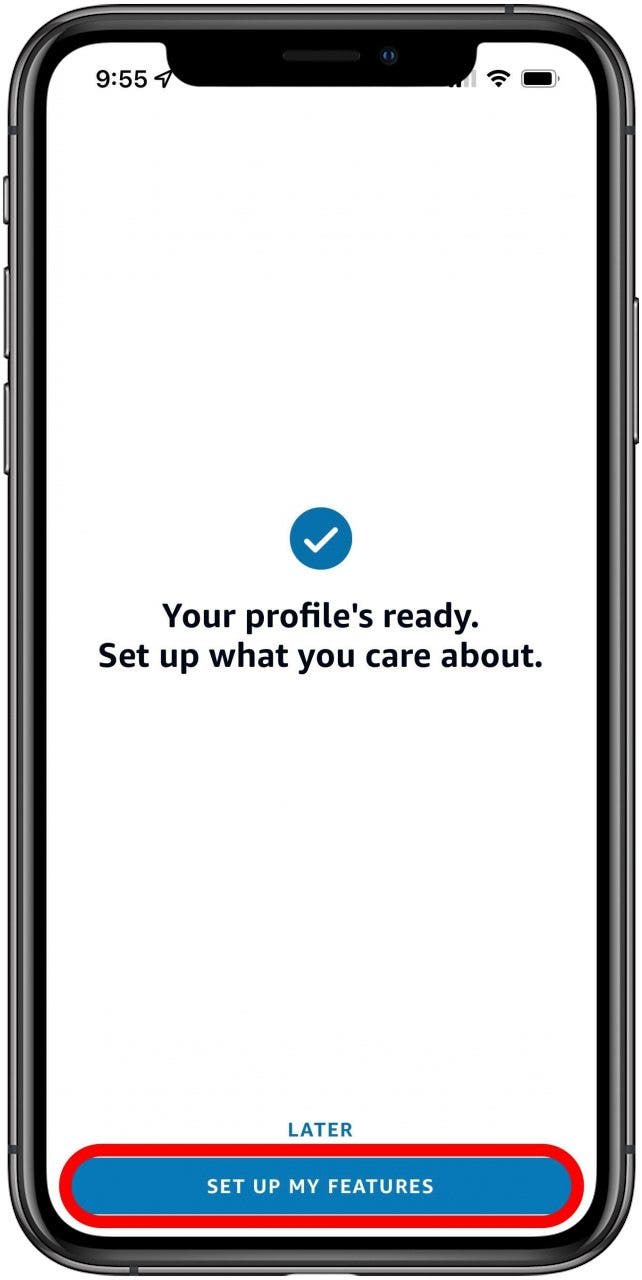 - Once Voice ID is set up, you'll be given the option to customize your features. Tap Set Up My Features or Later.