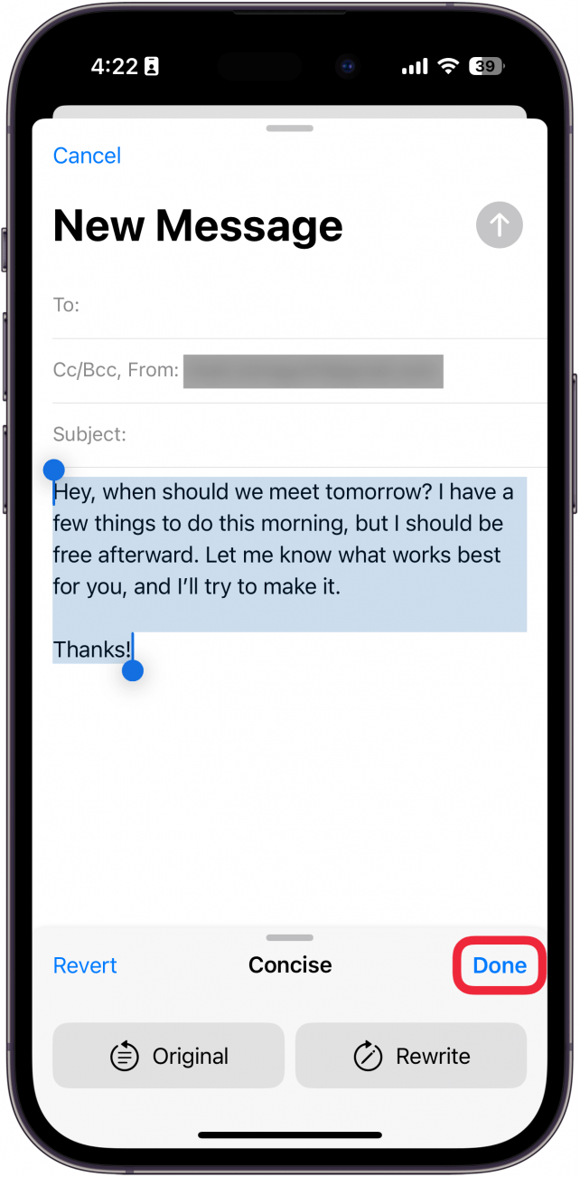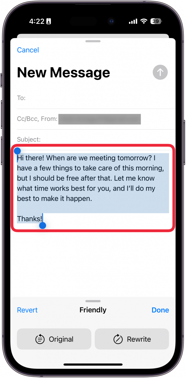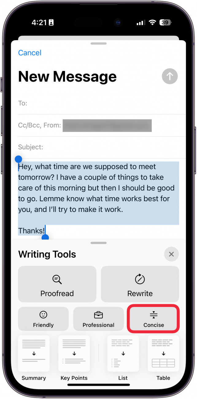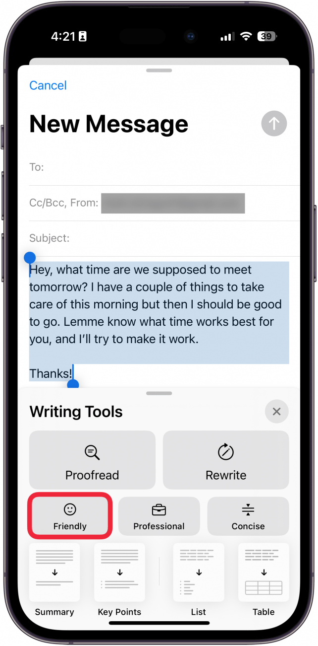 If you’re looking for writing apps for the iPhone, look no further; there’s one conveniently built into your device. Apple Intelligence-enabled devices can use AI to rewrite any body of text. You can use it to make your emails more professional, more concise, or friendlier. Let’s go over how to use Apple Intelligence Writing Tools: