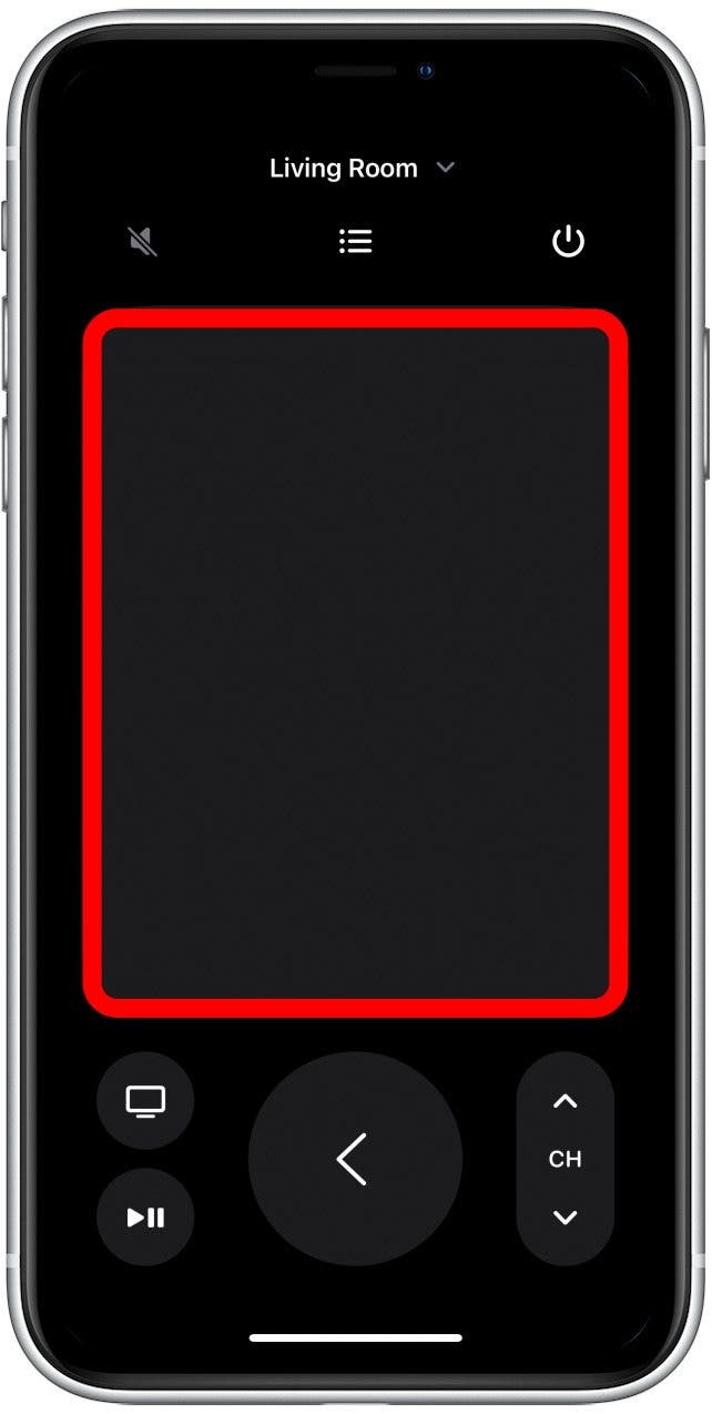 - The large open space in the center of the app is a touchpad. You can maneuver your cursor on your Apple TV just like you would use the touch feature on your iPhone.