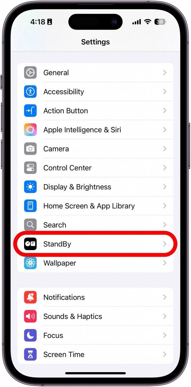 - Open the Settings app, and tap StandBy.