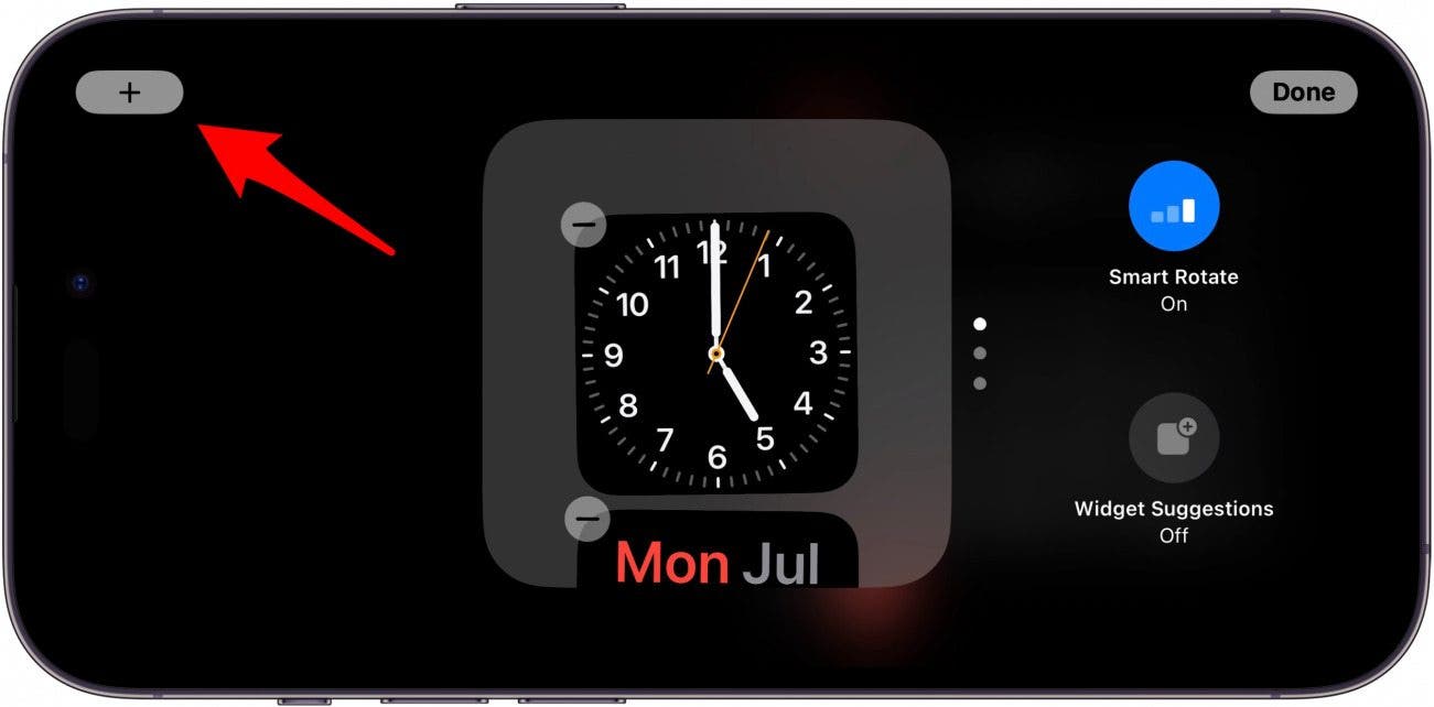 - Tap the plus icon to add a widget to the stack.
