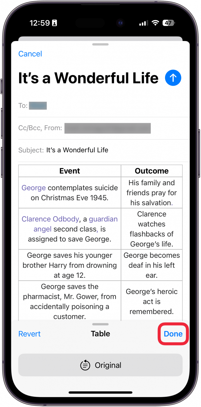 - Unlike the previous two options, List will replace your text. This option differs from Key Points in that Key Points summarizes your text, and List simply converts what you’ve already typed into a bulleted list. Tap Original to see your original text or Revert to change it back.