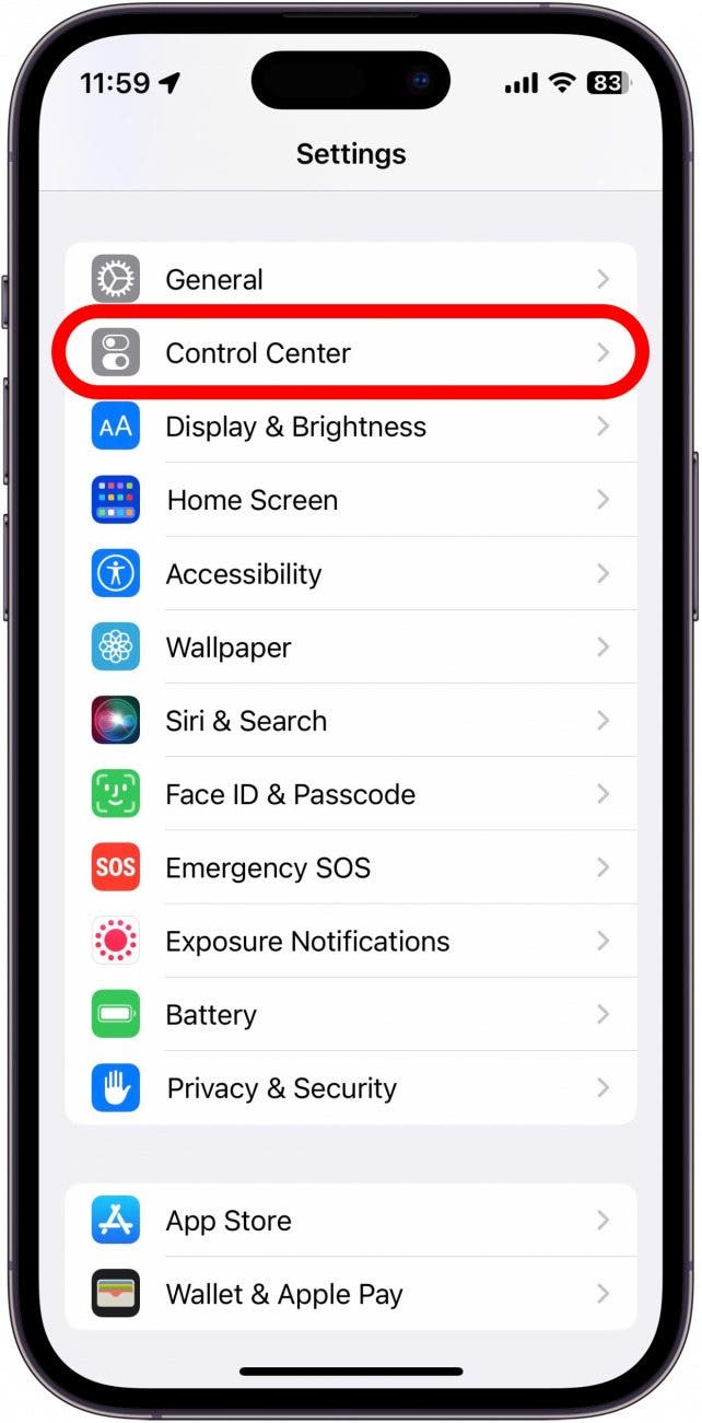 - Open the Settings app, and tap Control Center.