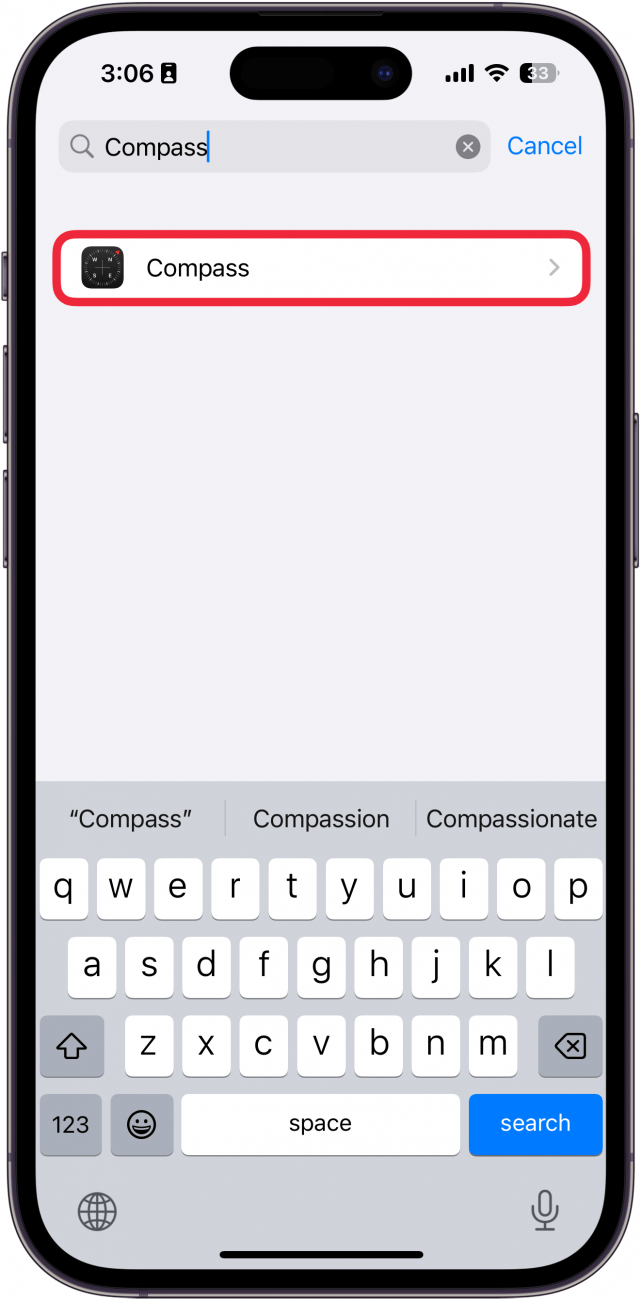 - Find the Compass app by either scrolling through the list or using the search bar.