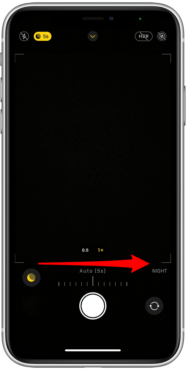 - If you don't see the Night mode icon at the bottom of your screen, tap the caret at the top to show more camera settings.