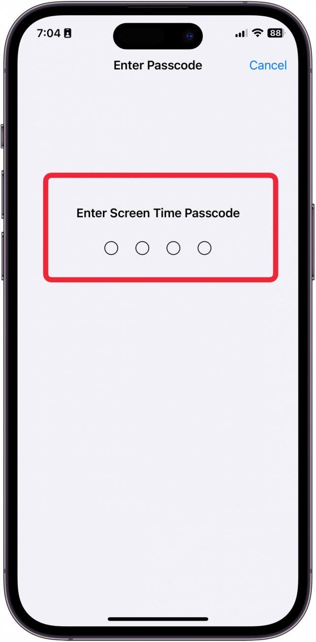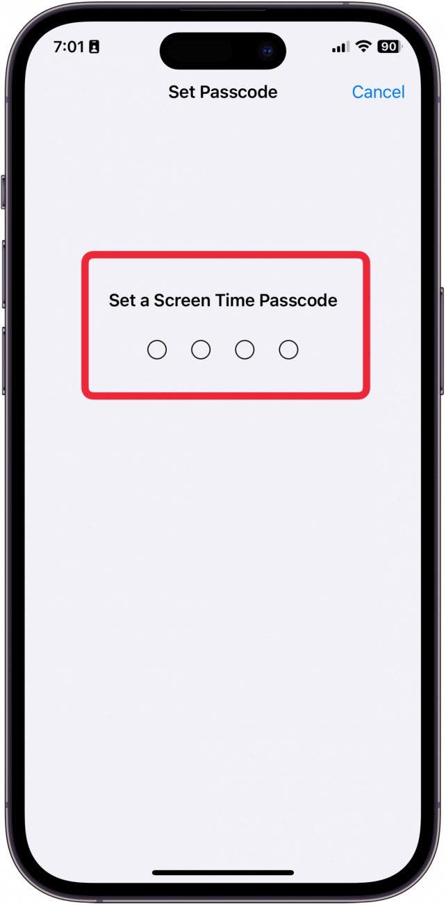 - From here, enter a passcode that will be specific to your Screen Time settings. You can use whatever password you want. You may need to enter your Apple ID email address and password at this step.