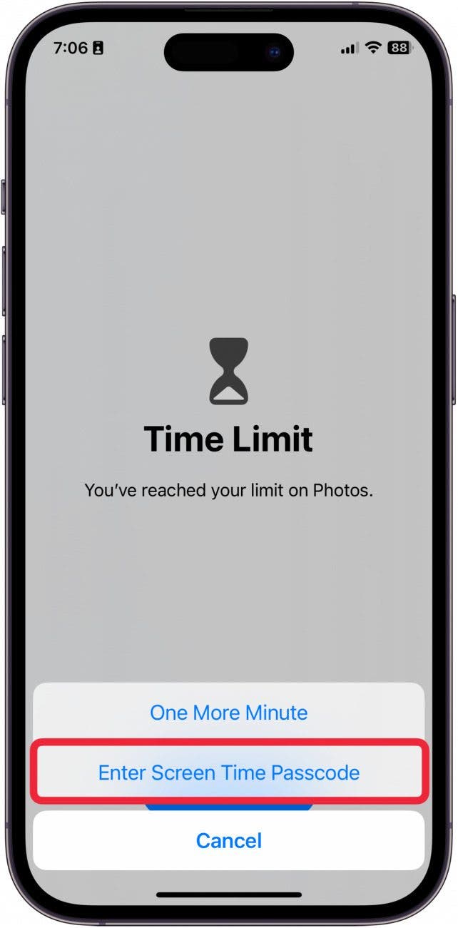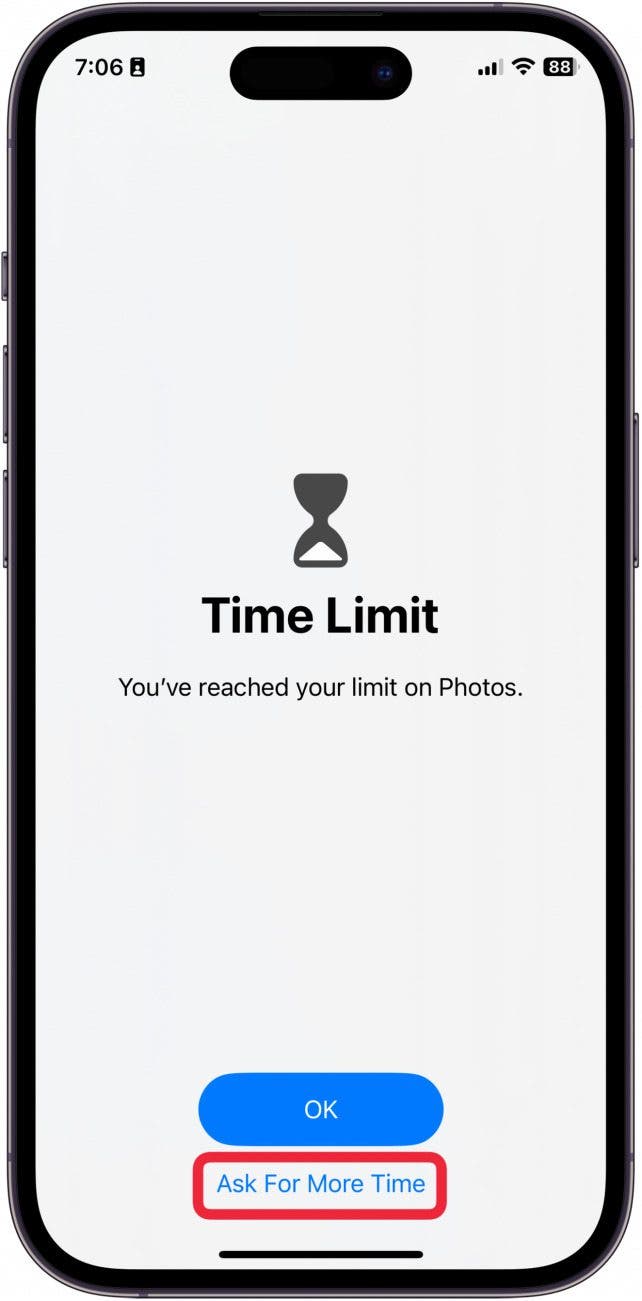 - When you're ready to unlock the Photos app, tap Ask For More Time.