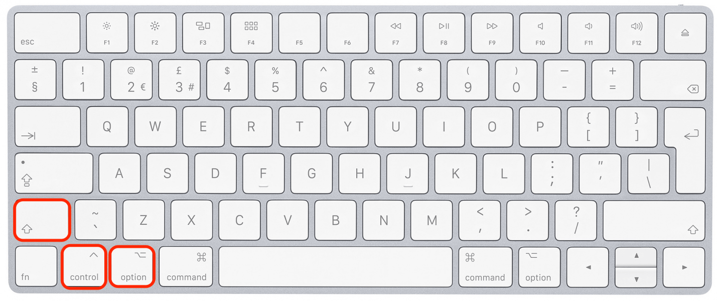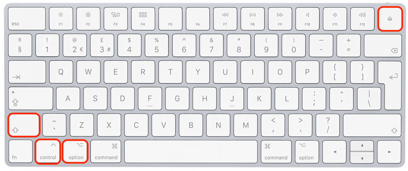 - Press and hold the Control+Option+Shift keys for seven seconds.