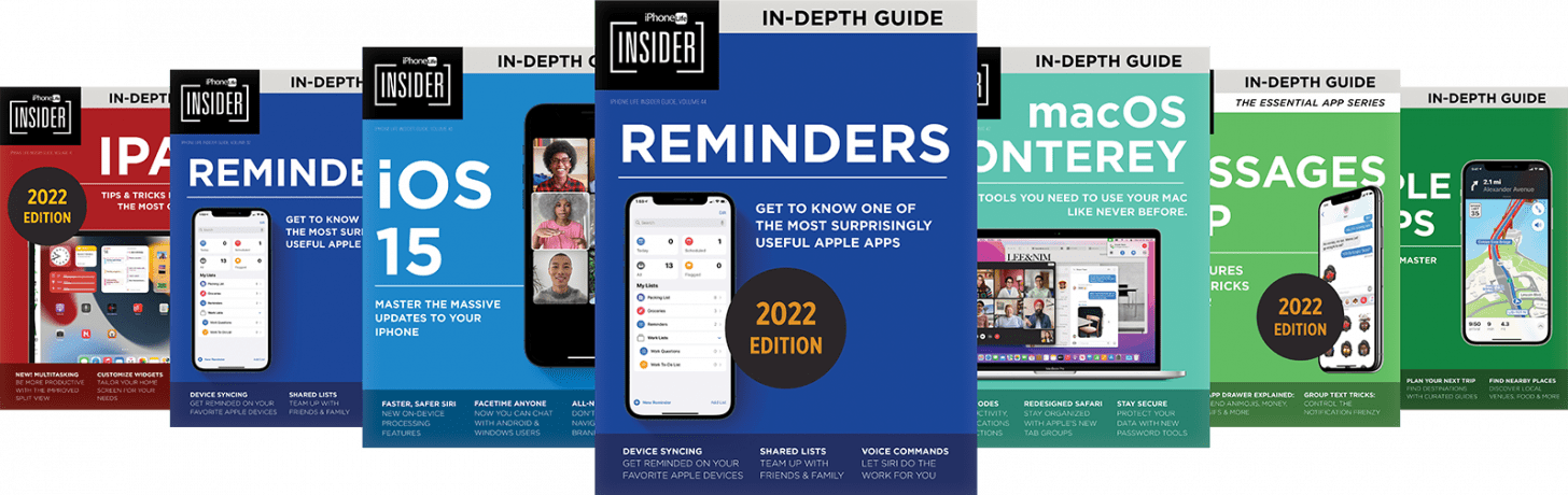 Our in-depth guides can be viewed as videos or printed as PDFs with step-by-step illustrated instructions, but that's not all we do for our iPhone Life Insiders. We designed iPhone Life's Insider education platform and subscription service to help you solve all your Apple problems in a fun, engaging, and easy way. Insider is your trusted resource for all the Apple information you need in your life, including: