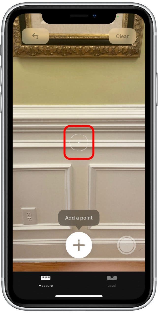 - Position the white dot over the place you'd like to start your measurement and tap the plus sign.