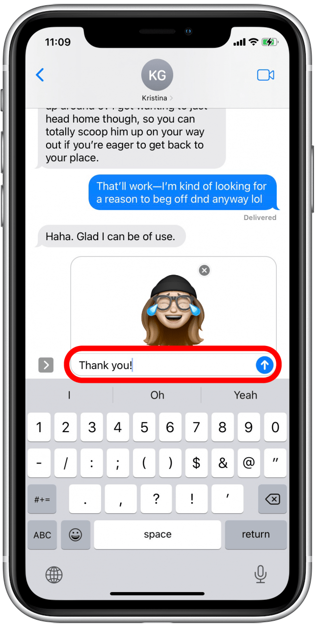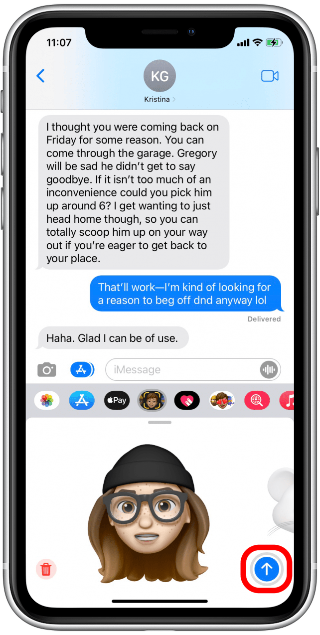 - Tap the send icon and your animated Memoji will be sent to your contact, along with the audio.