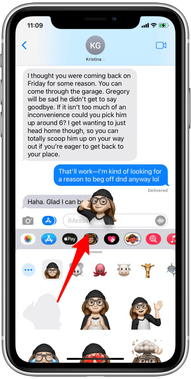 - To send a Memoji sticker, tap the Sticker Sheet icon from an open message.