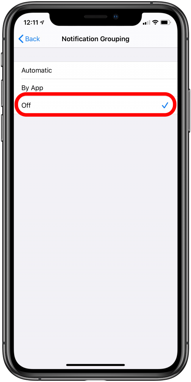 - If you tap Off, grouping is turned off altogether. Tap By App, and all the notifications from the app you chose will be grouped together. If you tap Automatic, notifications will be organized based on topics or threads within the app.