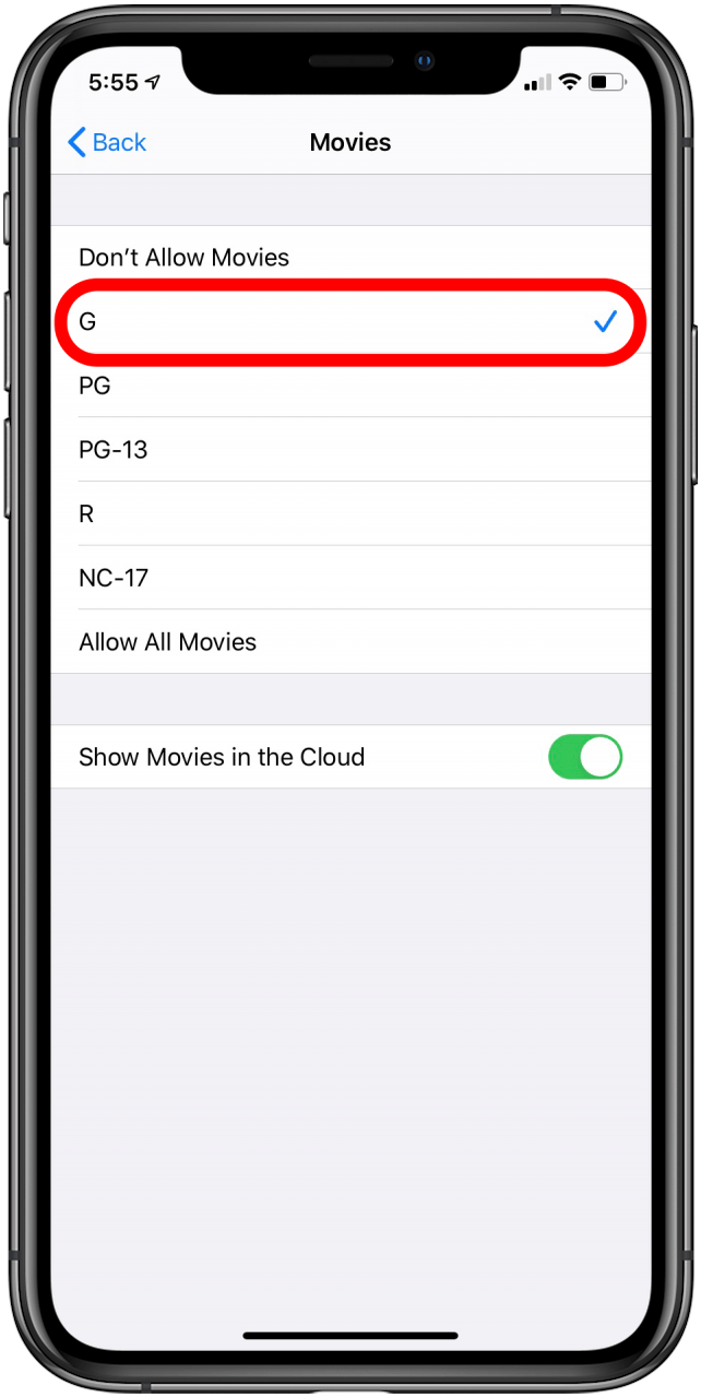 - You'll be given a rating or simply an explicit or non-explicit choice for each type of media; here I chose a G rating for Movies because I have a four-year-old.