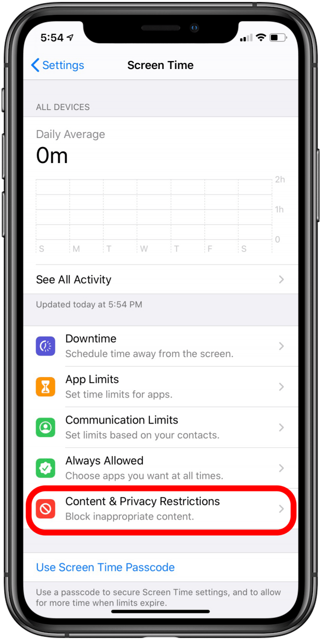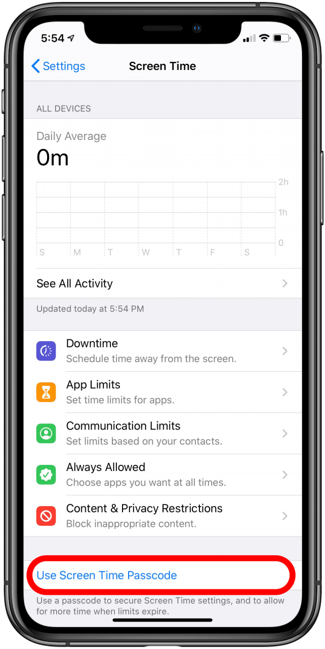 - To lock in the changes you've made, go back to the Screen Time page and tap on Use Screen Time Passcode.